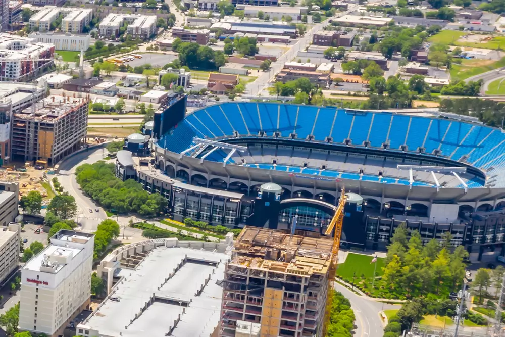 Bank of America Stadium is home to the NFL’s Carolina Panthers. The stadium hosts several concerts, MLS games, and other performances throughout the year. Panther's Stadium opened in September 1996. Bank of America Stadium's seating capacity is 74,867 fans.